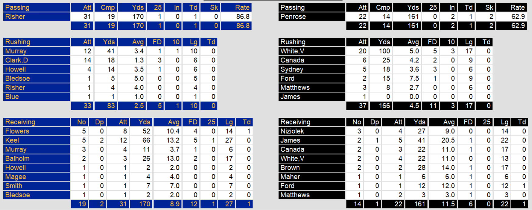 Arizona brought it to within 3 with only 14 seconds left in the game on an Alan Risher touchdown pass. But, all they have to show for it is their league leading 14th loss, 9 in a row. Even though they won’t have the first pick due to expansion, they all but secured a top 10 pick and can build from there next year.