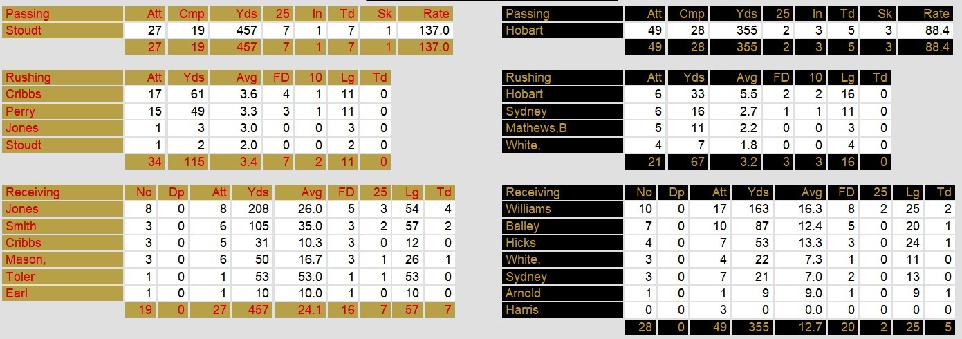 Birmingham routed Denver Sunday evening. They scored a season high 52 point. Behind 7 touchdown passes by quarterback Cliff Stoudt, they built an insurmountable 42-17 lead and then held on to take the win.