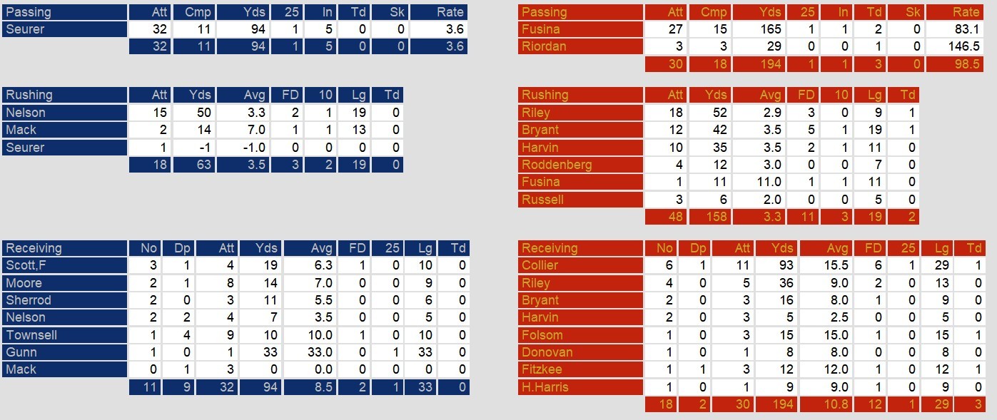 Los Angeles just wants to forget this game. With an injury to their quarterback Steve Young, his backup threw five interceptions, gained less than 100 yards passing and completed only 1/3 of his passes. The run game fared no better with only 63 yards.