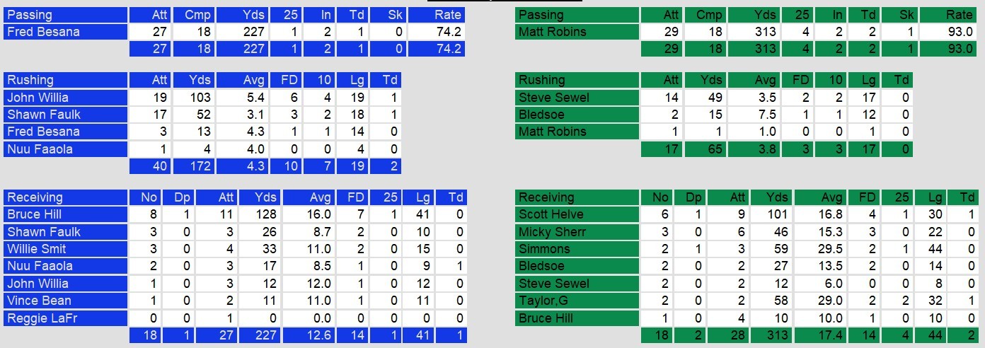 The Panthers clawed back in the third quarter as Hebert connected with Cobb for a 15-yard score, and Novo Bojovic added a short field goal, putting Michigan ahead 27-23. Houston’s offense sputtered, with Jim Kelly throwing two interceptions, but their defense held firm, keeping the Panthers out of the end zone. In the fourth quarter, Kelly orchestrated a methodical 12-play, 72-yard drive that ended in his two-yard touchdown run, putting the Gamblers back on top 30-27. Michigan had one last chance but failed to convert on a long field goal attempt.