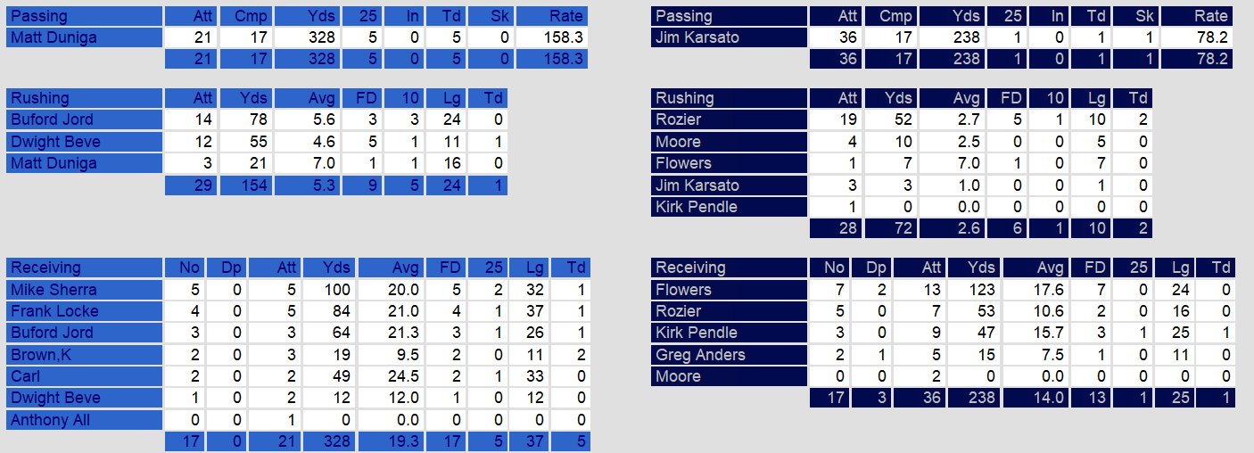 • Ground Support: Buford Jordan (78 yards) and Dwight Beverly (55 yards, 1 TD) kept Pittsburgh’s defense honest, combining for 133 rushing yards.