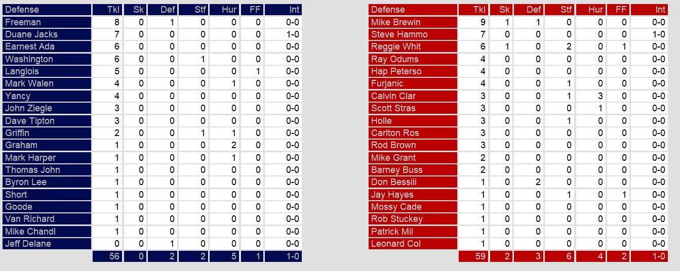 Pittsburgh’s woes continue. Now the lone winless team, they’ve been outscored by a pace of over 2 to 1. They managed less than 300 yards in the game, including 27 on the ground. Their only touchdown came in the form of a Jim Karsatos pass in garbage time when the game was long over.