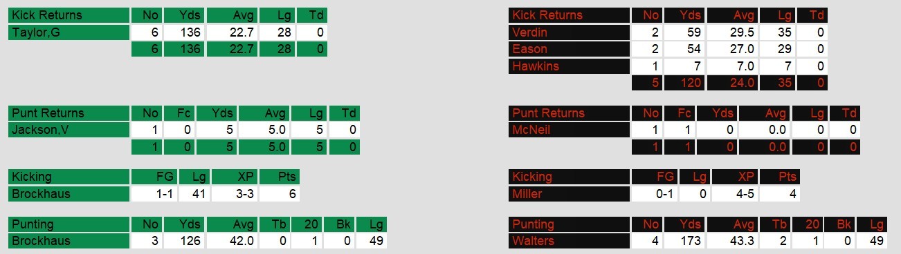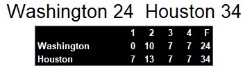Washington kept pace with the normally more explosive Gamblers, pulling to within three early in the 4th quarter. But, Kelly and Houston closed any further discussion with an 80 yard drive capped by Kelly’s second touchdown of the game. Houston also executed two defensive stands in the final quarter to seal the game.