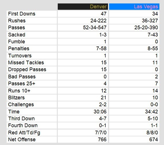Las Vegas hosts Boston next week. Denver is on a bye.