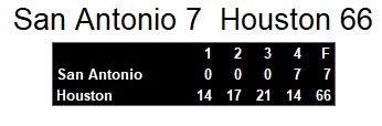 San Antonio Gunslingers 7, Houston Gamblers 66