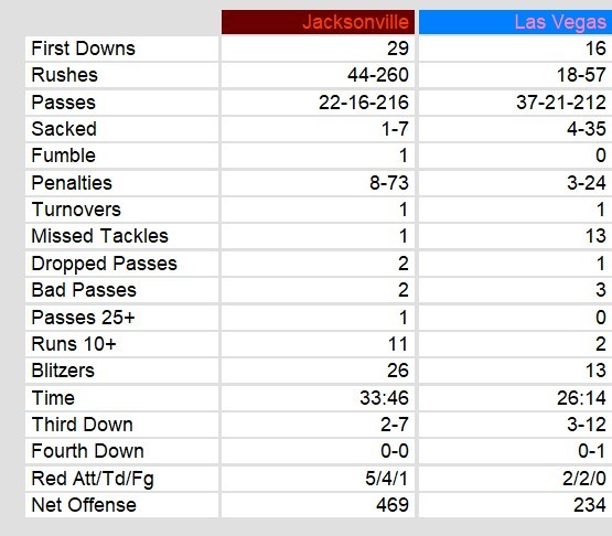Meanwhile, Jacksonville rushed for 260 yards, including 175 and 3 touchdowns by Larry Mason. Ed Luther threw a touchdown pass, Reggie Butts returned a punt 54 yards and John L. Williams added another rushing touchdown in the game. The win brings the first place Bulls to 10-3.