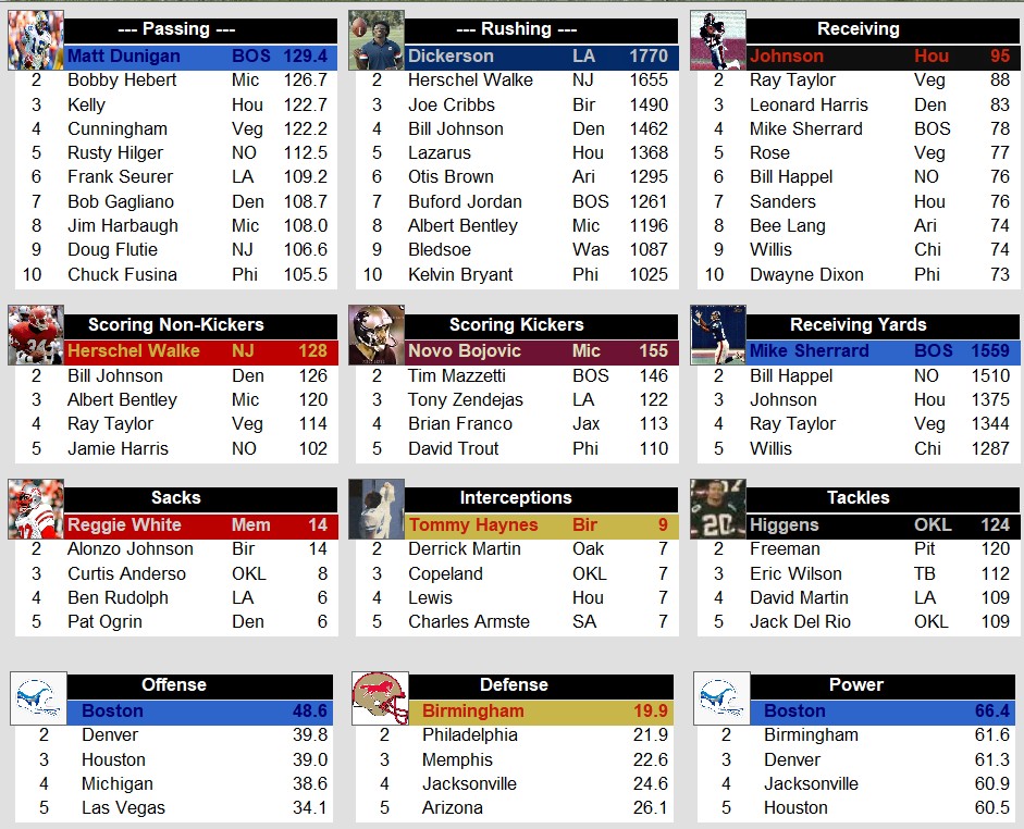 Stats, Weekly Stats 1986 USFL Week 15 Stat Leaders September 16, 2025 usflcommish Snapshot Passing Rushing Receiving Defense Special Teams Team Stats