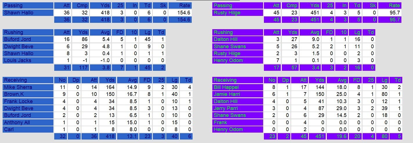 In spite of outgaining Philadelphia in nearly every stat, San Antonio lost the game. Quarterback Rick Neuheisel again had a dreadful game, throwing for six interceptions on the day. The turnovers included an opening pick six for Philadelphia.