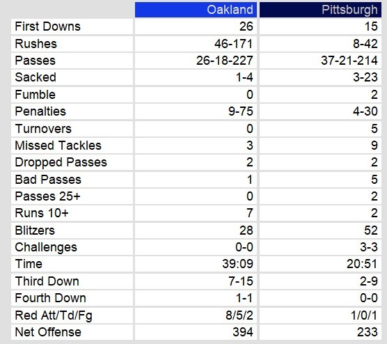 Dateline: Monday, May 19, 1986. Oakland absolutely manhandled Pittsburgh at Three Rivers Monday night to close out week 16. They went on runs of 23 and 17 points, allowing Pittsburgh only two field goals and a late touchdown in the game. The win puts Oakland at 6-8 and with an outside shot at a playoff spot.