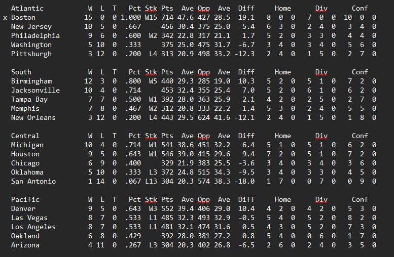 The main story continues to be the Breakers. The fans owners put their financial futures, and perhaps the future of the team, by throwing the bank at former CFL quarterback Matt Dunigan. Dunigan made an instant impact and has the Breakers on the verge of being the second team to go undefeated in the regular season. Michigan also accomplished that feat in the inaugural 1983 season.