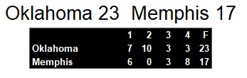 Oklahoma Outlaws 23, Memphis Showboats 17