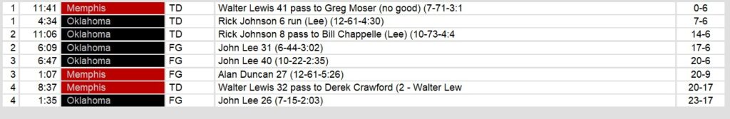 Dateline: Sunday, May 25, 1986. Oklahoma went into Memphis and stole a win on Sunday afternoon. In spite of being outgained in nearly every category, the Outlaws took advantage of 4 Memphis turnovers to get the win. Quarterback Rick Johnson provided just enough offense to secure the victory.