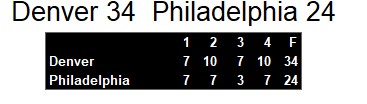 Both teams have a division game next week. Philly travels to Pittsburgh and Denver hosts Arizona.