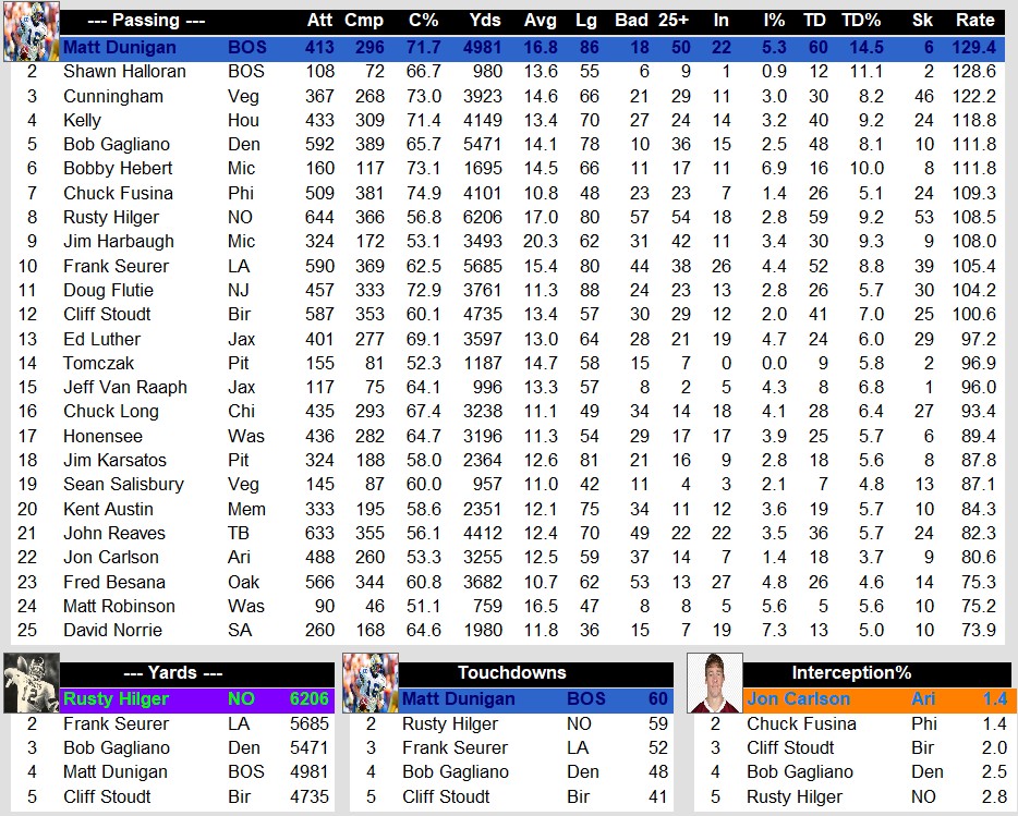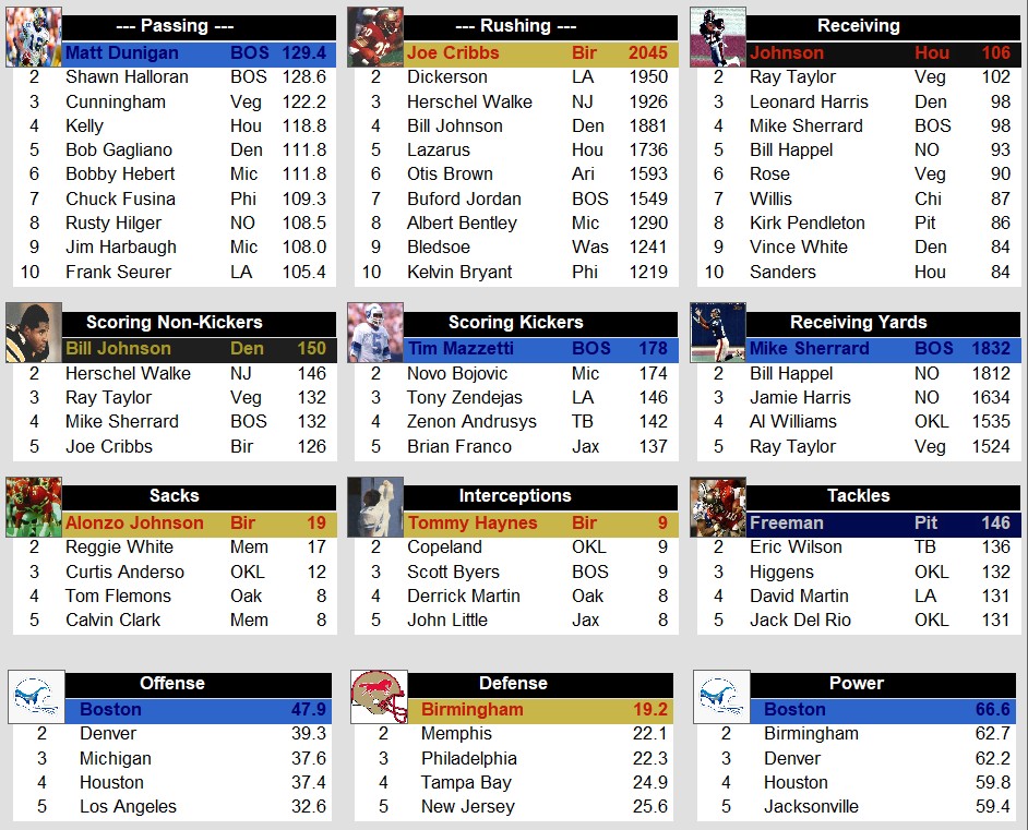 Stats, Weekly Stats 1986 USFL Week 18 Stat Leaders October 21, 2025 usflcommish Snapshot Passing Rushing Receiving Defense Special Teams Team Stats