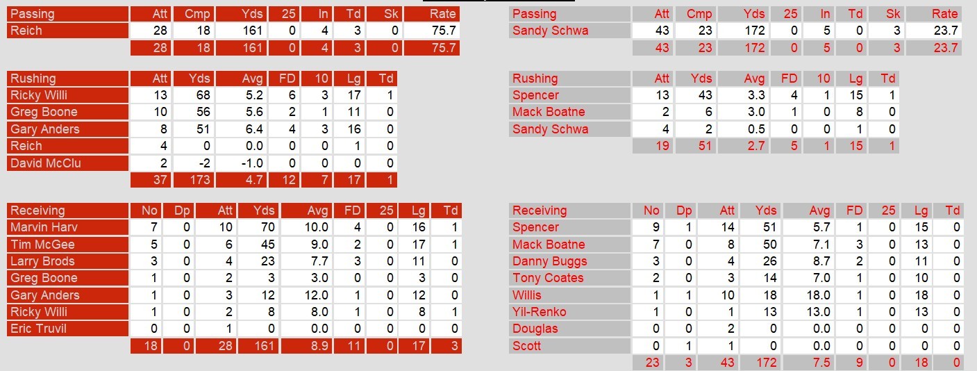 Dateline: Sunday, June 1, 1986. Another game, another blowout Sunday afternoon. Tampa Bay, like Memphis, held Chicago under 200 total yards of offense. They returned 3 intercptions for touchdowns and their backup quarterback Frank Reich handled the game well.